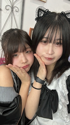 こんばんはあゆです👾 仲良しのるぅにゃん❤️𓈒𓏸 今日のるぅさんギャルなってるかわいい タトゥーもいれてたかわちぃね🤭 最近なかよちメイドさん増えて嬉しいし来月で入店して半年なります早い( ♡‧̫♡ )👍🏻💫💗 まだまだ頑張るから応援してください〜っ❕ 20時〜❕のみべにゃーんこ👾👾👾